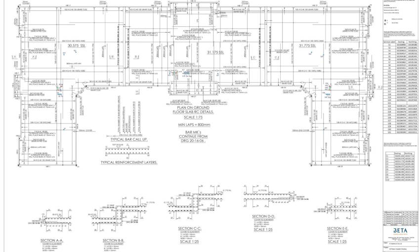 - Detailed construction drawings for 7 rafts including pile setting out and rebar drawings.