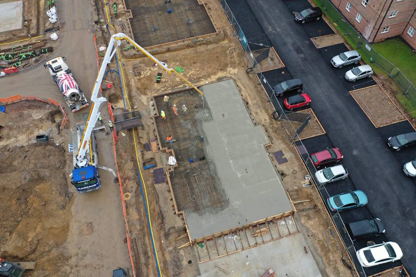 - The rafts require minimum excavation and shuttering compared to ground beams. The reduction in excavation and shuttering lead to huge savings in cost and programme. It is estimated that this has lead to savings of 20-25k per block and programme savings of 8-10 working days.