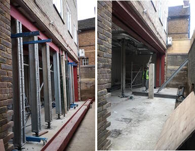 Having completed the design, Jaspar Group and their Principal Contractor, asked Beta Design Consultants to prepare the temporary works design and propose the construction method statement. Mabey Props Mass 50 were used in conjunction with a system of needling to support the external wall during the erection of steel.