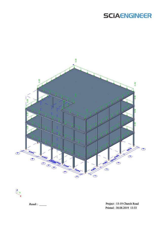 Beta Structural Engineers established existing loading on the column using SCiA Engineer. They established the size of the steel frame required to support the RC building following the column removal. They also established the existing ground beam capacity and it was clear that the ground beam would not have been designed to support the loading of the revised scheme. The ground beam was designed to be supported on columns at even spacing and by removing the column, the ground beam was spanning twice the distance, leading to a large negative moment and shear force at the other remaining supports. Beta Design Consultants looked into using FRP plates for bending strengthening, and GFRP bars for shear strengthening but these did not offer the required capacity. In the end a mix of FRP and HPC was established as the best way forward.