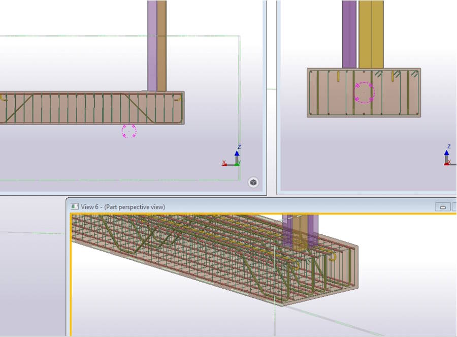 Tekla Structures was used to model the existing ground beam and the intended locations of the bars.